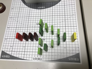 グリッパーがドミノに当たらないよう、並べ方を工夫しました。