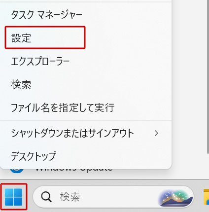2) PC画面左下の「Windows」スタートボタンより、「設定」画面に移行します。