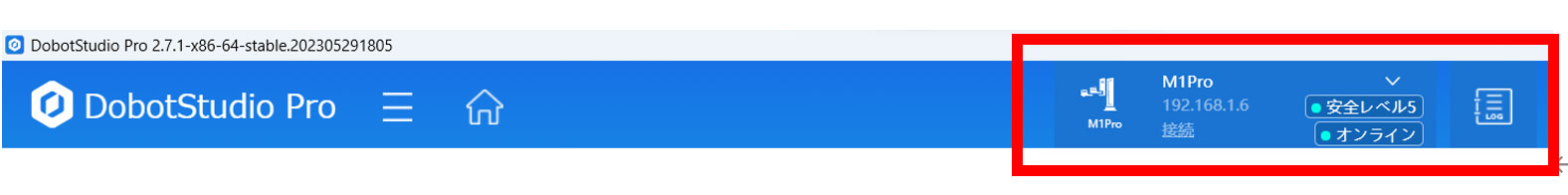 - 1) DobotStudioProを開き、M1Proをオンライン状態にしてください。