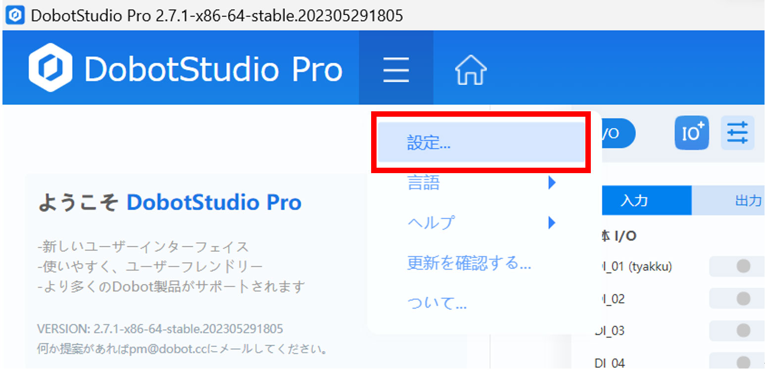 M1Pro制御用ソフトウェア「DobotStudioPro」および「M1Proコントローラファームウェア」のバージョンは、メーカー側にて随時アップデートされており、旧バージョン使用の際は、互換性上の不具合を生じる可能性があります。