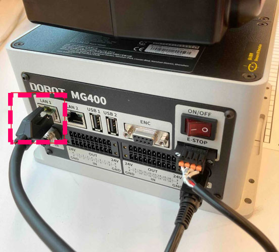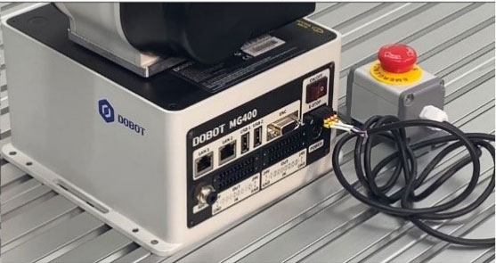 以上で本体の設置は完了です。 PCのアプリケーションDobot Studio Proを使用して操作を行う場合は、以下の記事を参考にMG400とPCの接続を行ってください。