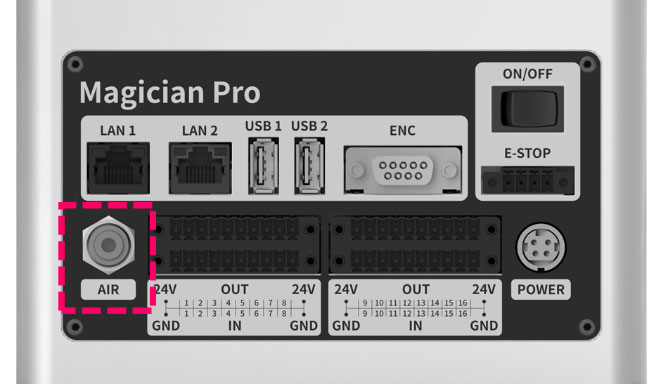 左下の【AIR】と書かれた円柱状の穴にチューブを挿してください。