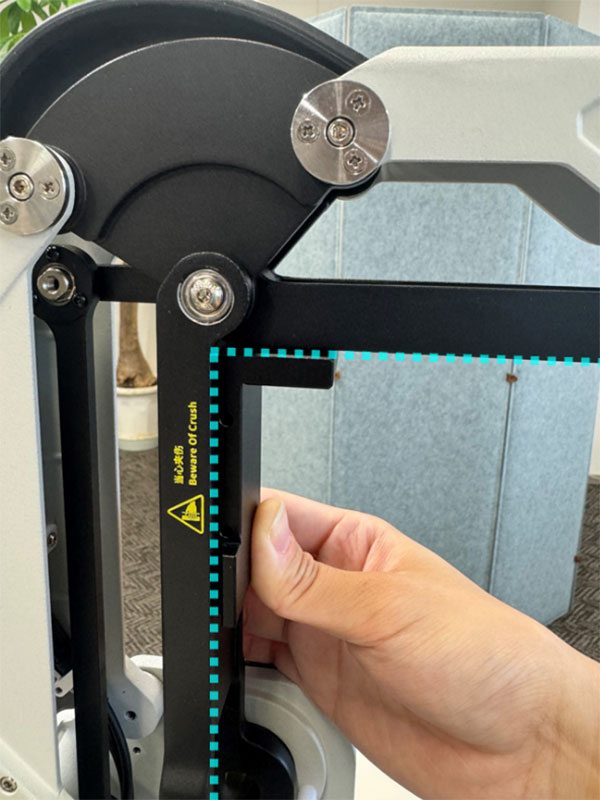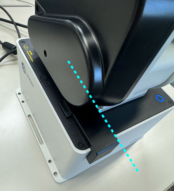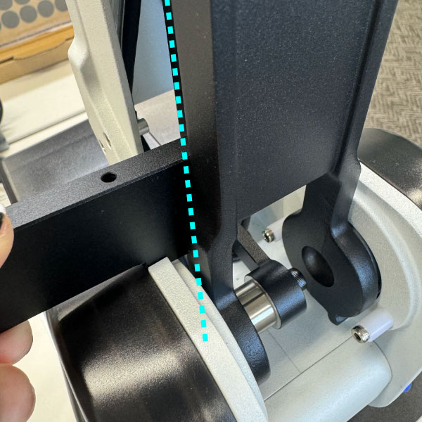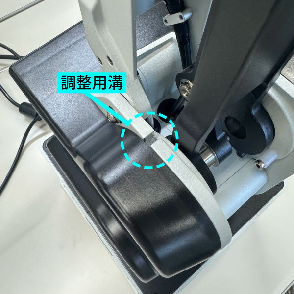 アームの左側にある原点調整用の溝に【Zero Position Fixture】を差し込み、アームが垂直になるように調整します。
