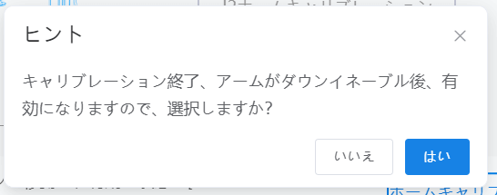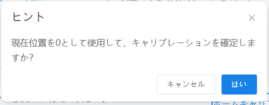「ホームキャリブレーション」をクリックすると、確認画面が表示されます。