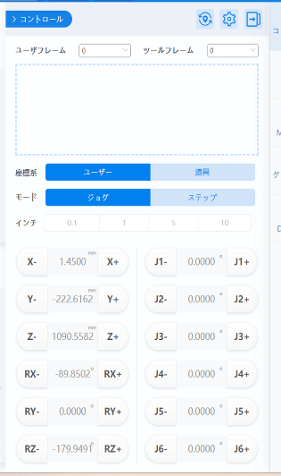 ハンドガイドモードを使うと、ロボットアームを手動で操作することが可能です。このモードではプログラムでの細かい設定が不要となるため、直感的に操作を行うことができます。