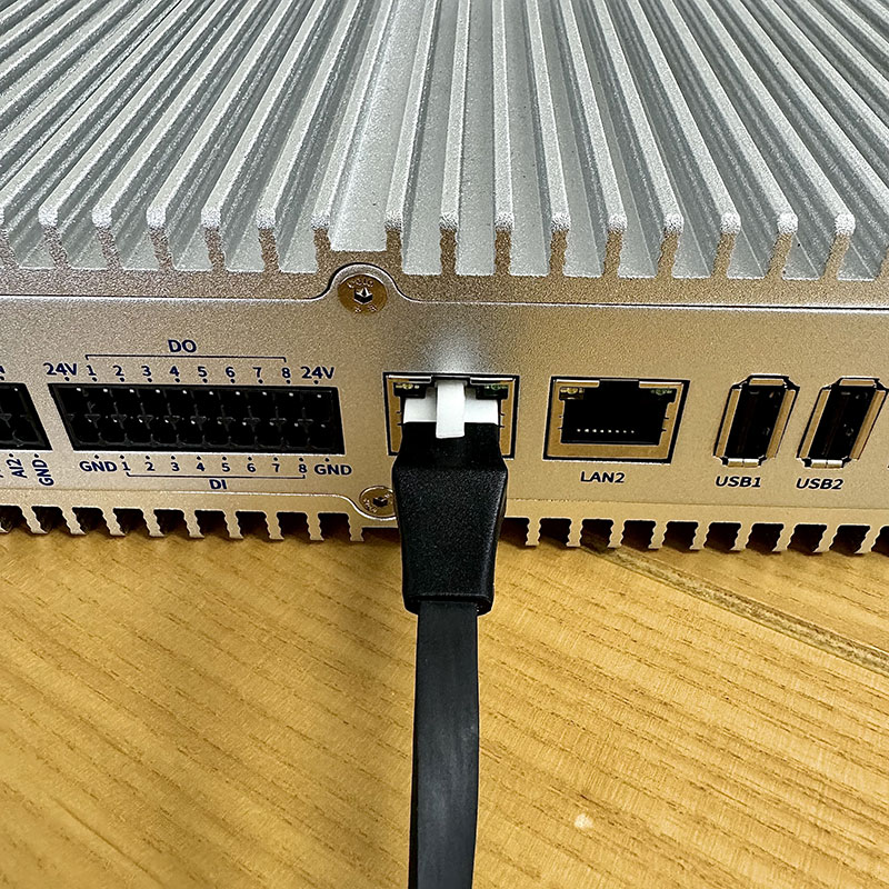 - M1Pro背面の「LAN1」ポート~お使いのPC間にLANケーブルを結線してください。結線後、M1Proの電源を入れてください。