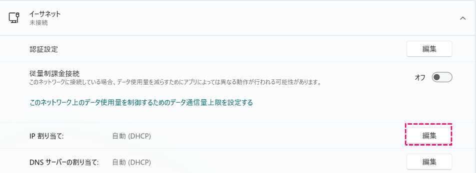 - ネットワークとインターネットの【イーサネット】を開きます。