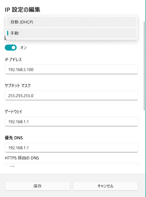 入力が完了したら[保存]をクリックして、IP アドレスの設定は終了です。