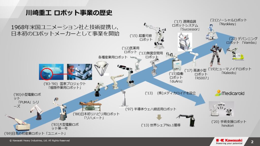 (「川崎重工 ロボット事業の歴史」提供元:川崎重工業株式会社)