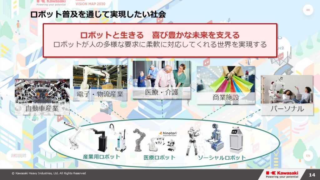 (「ロボット普及を通じて実現したい社会」提供元:川崎重工業株式会社)