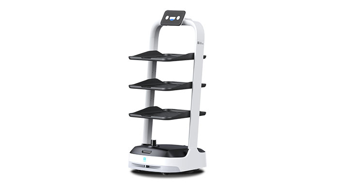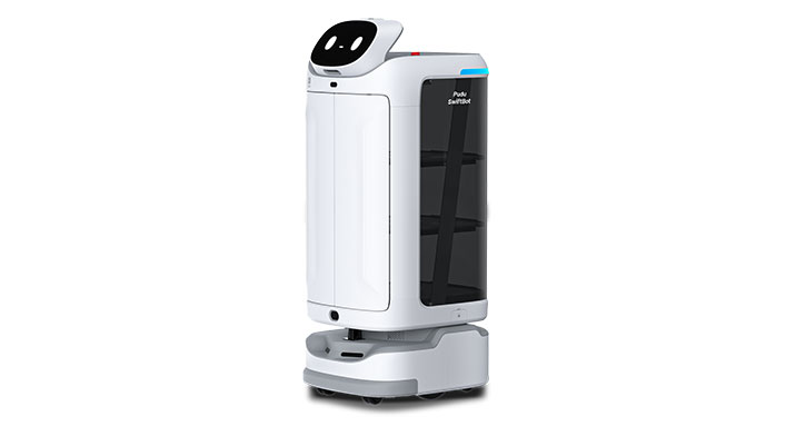 生産現場の煩雑な運搬作業を省力化するネコ型自動搬送ロボット。 4つのセンサー付きトレイ、最大24時間稼働できる大容量バッテリーを装備。